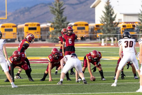Quarterback Ross Hilton lines up to take the snap against the Powell Panthers on Homecoming.