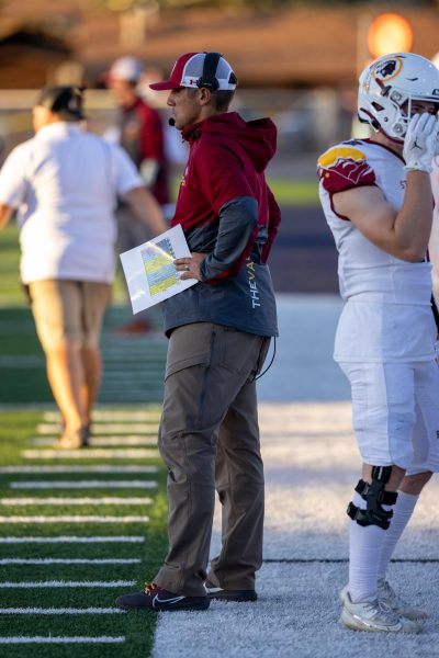 Coach McKay Young calling the plays from the sideline while playing the Cody Broncs.